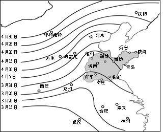 (六)山东是我国沿海经济、农业、海洋大省,图为杏花开花盛期的物候图。(14分)