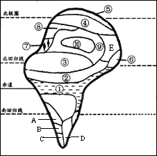 59.E自然带与数码 相同。南半球与⑦自然带类型相同的字母是 。