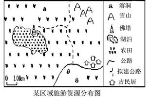 (八)读我国某区域旅游资源分布图回答。(10分)