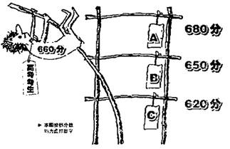假设图中的考生叫李华,2010年高考他的总分为660分,他第一志愿为院校A,第二志愿为院校B,第三志愿为院校C,根据今年的“平行志愿”制度,这些志愿均被视为“平行但有顺序排列的第一志愿”。