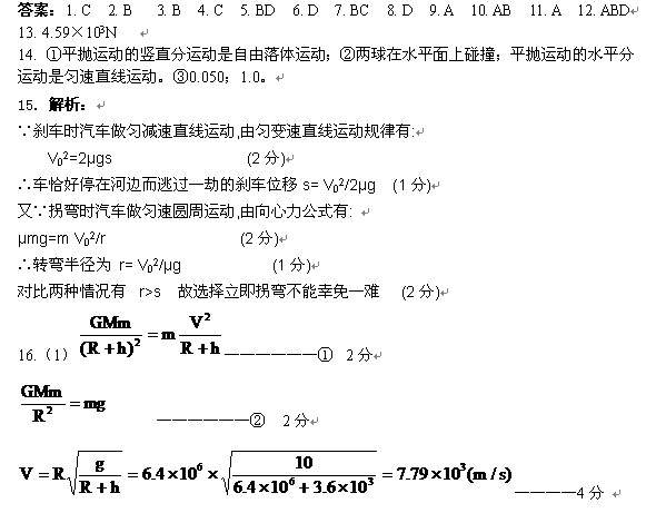 16.有一艘宇宙飞船,在离地高h=360km的圆轨道上做匀速圆周运动。若地球的半径为R=6400km,地面重力加速度g=10m/s2,求(结果取三位有效数字,