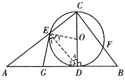 毕节24.(本题12分)如图,已知CD是△ABC中AB边上的高,以CD为直径的⊙O分别交CA、CB于点E、F,点G是AD的中点.求证:GE是⊙O的切线.