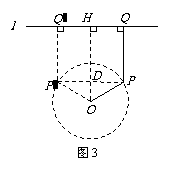 到l的距离为3,此时,OP将不能再向下转动,如图3.OP在绕点O左右摆动过程中所扫过的最大扇形就是
