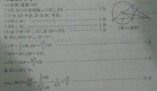 (2)若∠ABC=30°,求tan∠BCO的值。