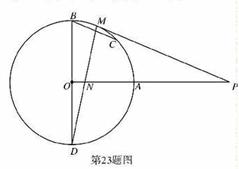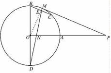 3.(2010,安徽芜湖)如图,BD是⊙O的直径,OA⊥OB,M是劣弧上一点,过点M作⊙O的切线MP交OA的延长线于P点,MD与OA交于点N。