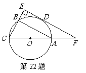 22.(本小题10分)如图,已知△ABC内接于⊙O,AC是⊙O的直径,D是的中点,过点D作直线BC的垂线,分别交CB、CA的延长线E、F