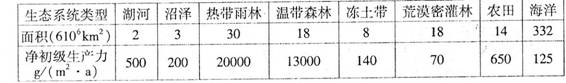 6.净初级生产力(NPP:net primary productivity)是生产者能用于生长、发育和繁殖的能量值,也是生态系统中其他生物成员生存和繁衍的物质基础。净初级生产力=总初级生产力-自身 呼吸消耗。地球上的生态系统种类繁多,其净初级生产力有很大差异。下表为地球上主要生态系统的总而积及净初级生产力的数值。下列叙述错误的是( )