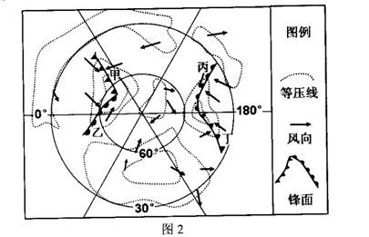 图2是某日极地附近风向示意图。据此回答4-6题。