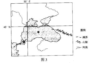 C.图中西部河流为内流河 D.图中山脉西部降水多于东部