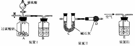 ②乙侧学把上述装置组合,用于测定2Na2CO3·3H2O样品中Na2CO3的含量。按气流从左到右的方向,装置I、II、III的连接顺序是 (填装置序号); B、E中应分别盛放 、 ;装置III中通空气的目的是 。