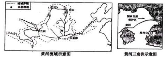 材料一:黄河流域示意图和黄河三角洲示意图。