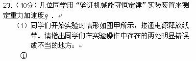 方案二:按方案一所编列的计数点,如图所示测出1 ,2 ,…,6各点到0计数点的距离,分别记作h1 , h2 , …h6 ,并求出打下1 ,2 ,…,5各计数点时重锤的速度υ1 ,υ2 , …υ5 ,以υ2为纵坐标,h为横坐标,作出υ2-h图线,求得该图线的斜率为k.则重力加速度g = ___________.