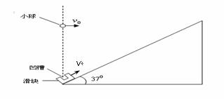 从斜面底端上滑,同时在斜面底端正上方有一小球以速度v0水平抛出,经过0.4s,小球恰好无碰撞地(垂直斜面方向)落入凹槽,此时,小滑块还在上滑过程中。已知