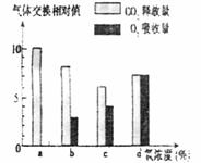 c、d时,CO2释放量和O2吸收量的变化。下列相关