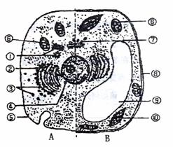 (5)若该B是紫色洋葱鳞片叶细胞的一部分,则色素主要存在于[ ] 。如果其是植物的根毛细胞,则图中不应有的结构是[ ] 。如果是植物的根尖分生区细胞,则与其分裂增生直接有关的细胞器有 (填标号)。