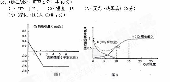 54.(10分)在一定实验条件下,测得某绿色植物的光合作用如图(一)所示,细胞呼吸如