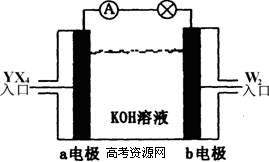 (2)将YX4、W2按上图所示通入某燃料电池中,则两极的电极方程式分别为: