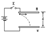 18.(16分)相距为d的M、N两平行金属板与电源相连接,如图所示。一个带电粒子从M极板边缘,垂直于电场方向射入,并打到N板的中心。现在欲使粒子原样射入,但能射出电场,不计重力,就下列两种情况,分别求出N板向下移动的距离。