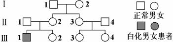 ②Ⅱ1和Ⅱ2夫妇再生育一个患白化病的小孩的概率是 。