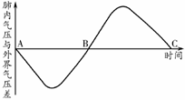 右图是某人在一次平静呼吸过程中肺内气压的变化曲线。在曲线BC段的变化中,膈肌的舒缩状态和膈面积的变化分别是