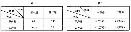 (I)已知甲、乙两种产品每道工序的加工结果为A等级的概率如表一所示,分别求工厂生产甲、乙产品为一等品的概率P甲和P乙;