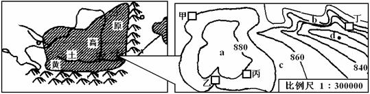 (河南省郑州市47中2010届高三实验班第一次月考)下图为黄土高原及高原上某地等高线地形图。读图回答8-9题: