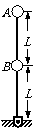 6. 如图所示,长为2L的轻杆上端及其正中央固定两个质量均为m的小球,杆的下端有光滑铰链与水平面相连接,杆原来竖直静止,现让其自由倒下,则A着地时的速度为( )
