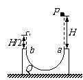 8. 如图所示,Q是一个带半圆形轨道的物体,固定在地面上,轨道位于竖直平面内,a、b两端点等高。金属块P从H高处自由下落,滑过Q从b点竖直上升,到达的最大高度是H/2。当它再次落下,滑过轨道最低点后,( )