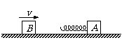 10. 如图所示,一个质量为m的物体A静止在光滑的水平地面上,A的左端固定着一跟轻质弹簧,现有另一质量也为m的物体B以某一速度v滑向物体A,从B与弹簧接触到弹簧第一次压缩至最短的过程中,下列说法中正确的是( )
