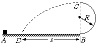 17. 如图所示,半径R = 2.5 m的竖直半圆光滑轨道在B点与水平面平滑连接,一个质量为m = 0.5 kg的小滑块静止在A点。一瞬时冲量I使滑块以一定的初速度从A点开始运动,经过t = 2 s后从B点进入圆轨道并从最高点C水平飞出落在水平地面上的D点,经测量B、D间的距离s = 10 m,滑块与水平面间的动摩擦因数为μ = 0.2,重力加速度g = 10 m/s2。求: