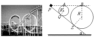如图所示,左图是游乐场中过山车的实物图片,右图是过山车的原理图。在原理图中半径分别为R1 =