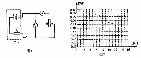 (3)电源的输出功率与外电路的电阻R有关,如图1所示是研究它们关系的实验电路。R0为保护电阻,R0与电池串联,它们一起可看作一个等效电源(图中虚线框),此等效电源的内阻r就是电池的内阻和定值电阻R0之和,等效电源的电动势为E。(电流表、电压表看作理想电表)