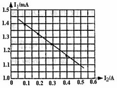 下图为小明根据实验数据作出的I1-I2图线(I1为电流表G的示数,I2为电流表A的示数),由该图线可得:被测干电池的电动势E=