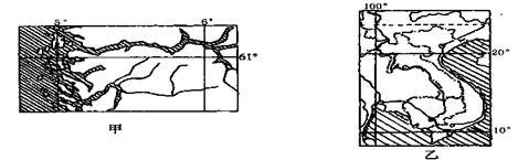 读下图甲和图乙,回答38---40题。