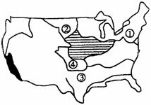 读美国农业分布图,回答44-45题。