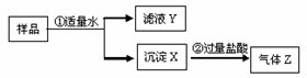 (3)取滤液Y,测得其pH > 7,向其中滴入硫酸钠溶液,未观察到任何现象,则滤液Y中一定含有的含氧酸根离子是(用离子符号表示) 由此推测“将过量的气体Z通入滤液Y中”的实验现象是 。