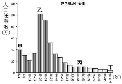 17、图中甲~丁不同年龄的人口迁移,有明显相关的是