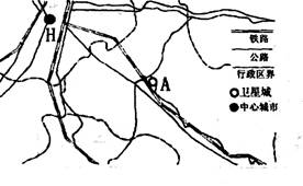 下图中A城为以机电、轻纺、食品工业为主的H市的卫星城。读图完成26--27题。