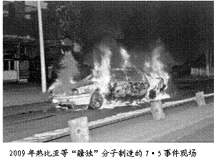 2010年5月17-19日,中共中央、国务院在北京召开新疆工作座谈会,这充分体现了党和国家对新疆地区的重视,必将对新疆的全面发展产生深远影响。然而,少数“疆独”分子却一再挑起事端(如右图),企图破坏民族团结,制造国家分裂。他们的这些行径遭到全国和全世界爱好和平人民的一致谴责。新疆自古就是中国的领土,公元前60年,西汉政府设立