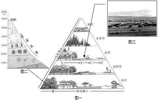 11.图三为图一中G处的景观图,从地理环境的整体性分析,有关此景观图的下列叙述正确的是: ( )