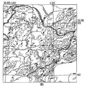 2.产生本地区水分、热量分布由甲向丙逐步递减的主要因素是 ( )