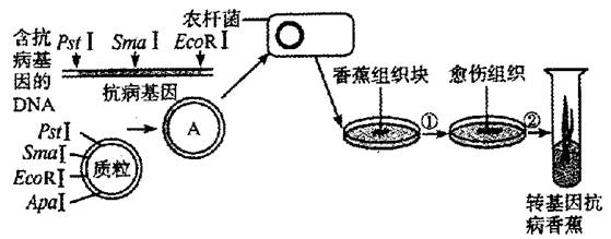 45.(10分)转基因抗病香蕉的培育过程如图所示。质粒上有Pst I、Sma I、EcoR I、Apa I等四种限制酶切割位点。请回答: