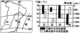 C.甲--热带草原气候,乙--热带季风气候 D.甲--热带雨林气候,乙--热带草原气候