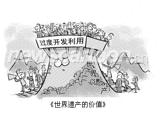 32. (10分) 2008年7月6日,第32届世界遗产大会召开,随着福建土楼、江西三清山的申遗成功,中国世界遗产数量已达37处。但正如下图所示,中国对世界遗产的保护仍然任重而道远。