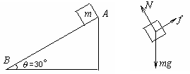 [例1]一斜面AB长为10m,倾角为30°,一质量为2kg的小物体(大小不计)从斜面顶端A点由静止开始下滑,如图所示(g取10 m/s2)若斜面与物体间的动摩擦因数为0.5,求小物体下滑到斜面底端B点时的速度及所用时间.