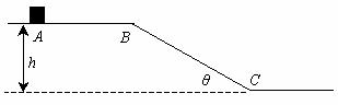 [例2]如图所示,一高度为h=0.8m粗糙的水平面在B点处与一倾角为θ=30°光滑的斜面BC连接,一小滑块从水平面上的A点以v0=3m/s的速度在粗糙的水平面上向右运动。运动到B点时小滑块恰能沿光滑斜面下滑。已知AB间的距离s=5m,求: