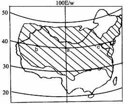 (3)若图中b点分别在中国、美国境内,其共同的气候特征是 ;但成因却有所不同:中国 ;
