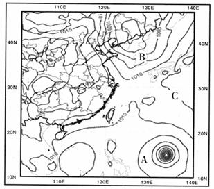 31.(安徽省2010届高三一轮复习名校联考)读东亚(局部)2009年10月16日某时海平面等压线分布图回答: