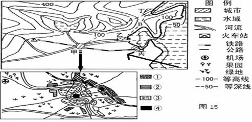 (1)制约乙城港区进一步发展的自然原因是 ;丙城是以装卸、仓储、造船为主的港口城市,其港区发展的主要优势条件是 。