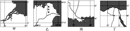 C、丙、丁两图中,河流入海口附近地区共同的气候特点是高温期与多雨期一致
